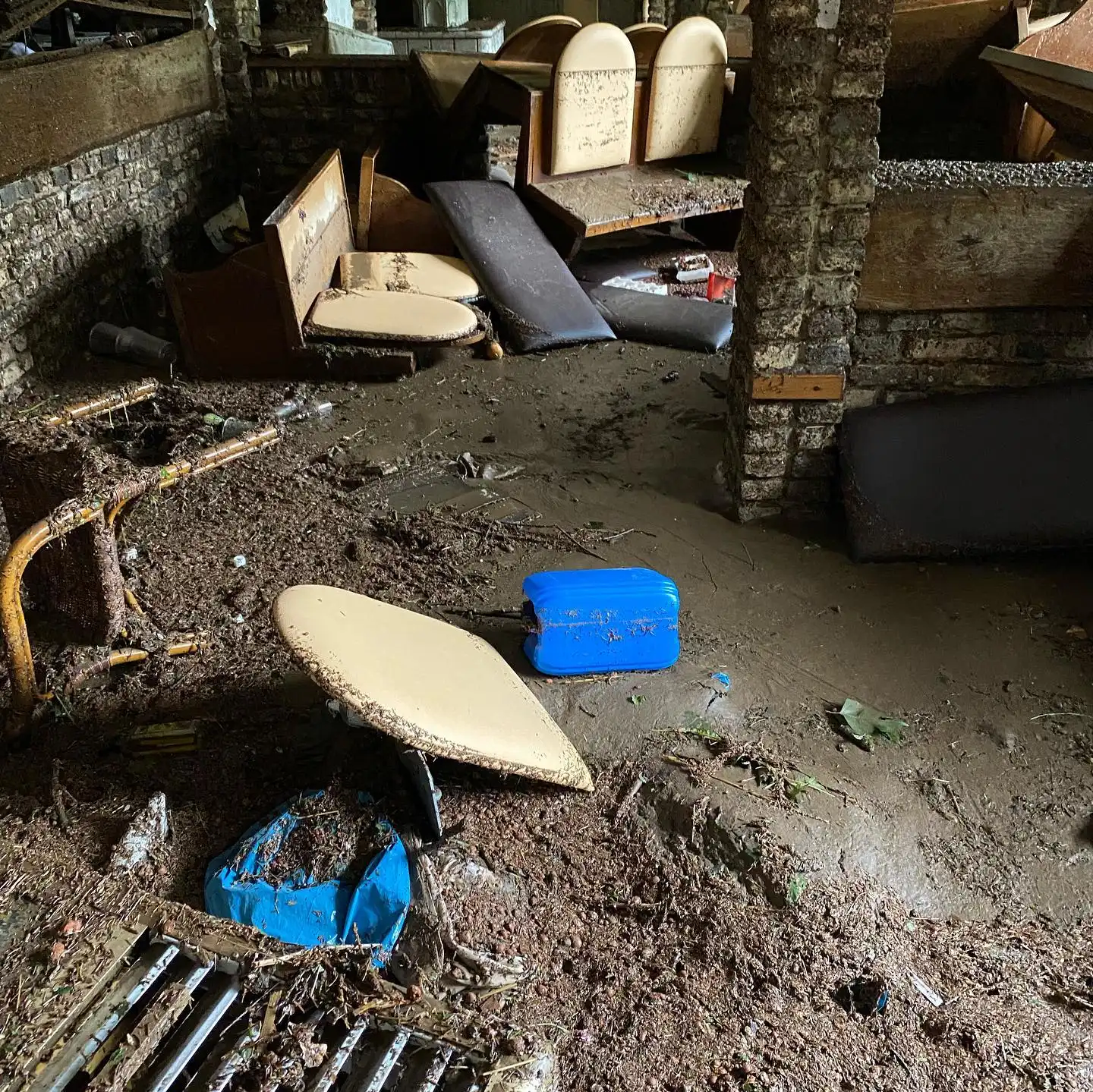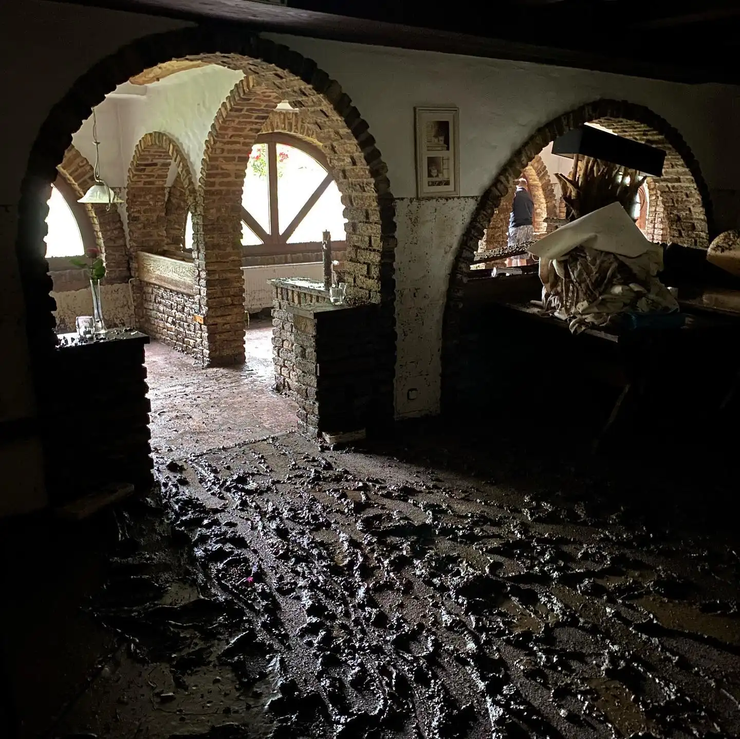 Das Hochwasser im Juli 2021 hinterließ im Vichter Landhaus erhebliche Schäden. Besonders betroffen war das Erdgeschoss mit der Küche, wo die Wassermassen nahezu alles zerstörten. Die Einrichtung wurde stark beschädigt, und viele Geräte waren nach der Flut unbrauchbar. Die Kraft der Natur zeigte sich in voller Härte – Schmutzwasser drang unaufhaltsam ein, riss Gegenstände mit sich und hinterließ eine Spur der Verwüstung. Der Boden war aufgeweicht, Wände mussten aufwendig getrocknet werden, und die Atmosphäre des einst so einladenden Restaurants war verschwunden. Auch der Außenbereich wurde in Mitleidenschaft gezogen, und Treibgut sammelte sich überall. Die Auswirkungen der Flut waren nicht nur materieller Natur. Für das Team des Vichter Landhauses war es ein emotional schwerer Moment, ihr Restaurant in diesem Zustand zu sehen. Gäste, die das Lokal über Jahre hinweg besucht hatten, konnten kaum fassen, was mit dem einst beliebten Treffpunkt geschehen war. Das Hochwasser 2021 bleibt ein prägendes Ereignis in der Geschichte des Vichter Landhauses und der Region – eine Erinnerung daran, wie schnell Naturgewalten alles verändern können.